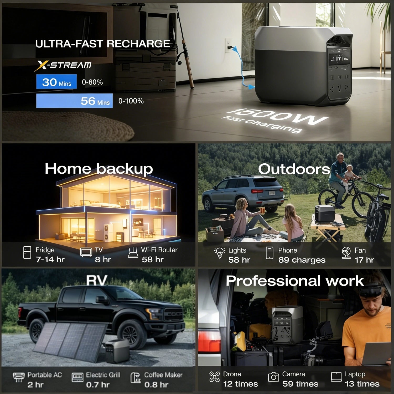 1800W Portable Backup Power Station with Free 400W Solar Panel