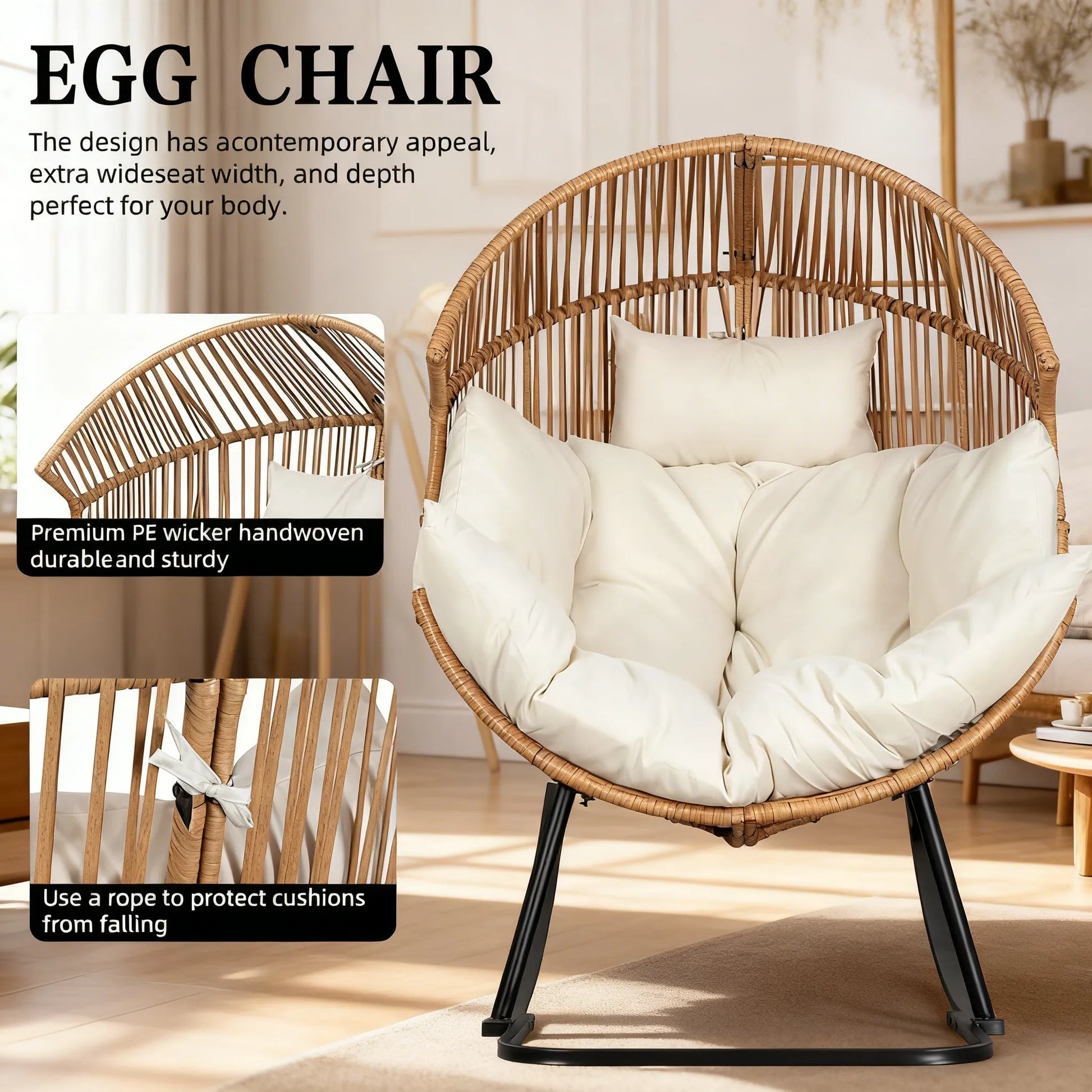 Crafted with premium handwoven PE wicker, this oval basket chair is sturdy and durable, ensuring it will last for years. It's ideal for outdoor spaces like gardens, lawns, patios, by the pool, or even for coffee and reading time.